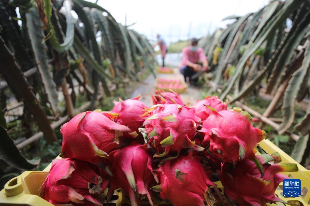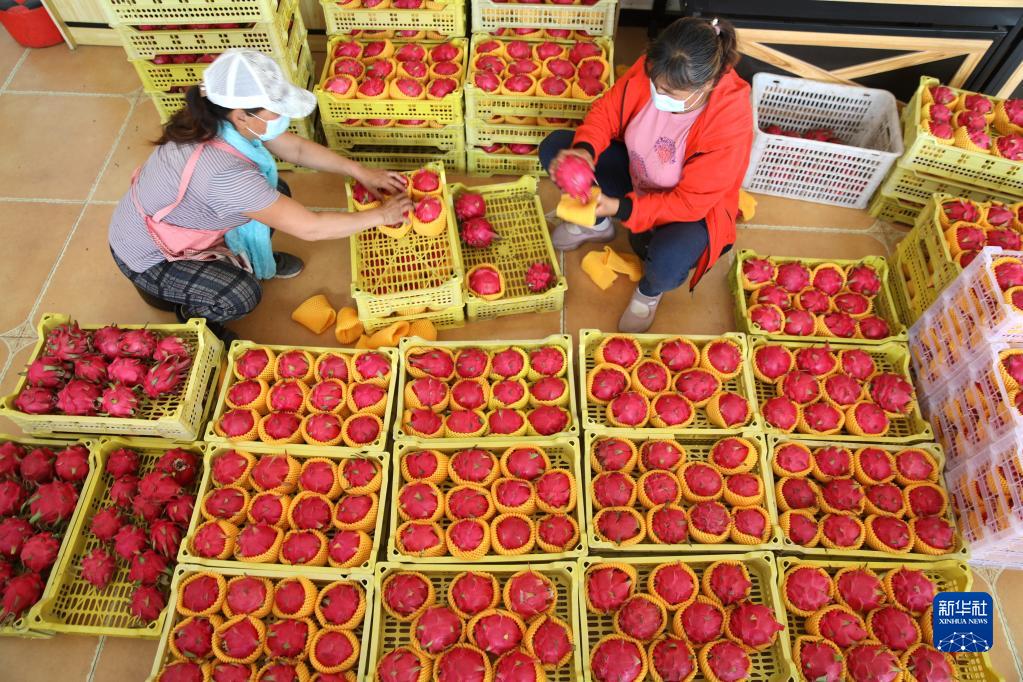 秋日,在河北省平泉市黄土梁子镇火龙果产业示范基地,农民忙着采摘、搬运、包装红心火龙果供应市场。近年来,平泉市在调整农业产业结构中,采取“合作社+基地+农户”模式,引进优质红心火龙果品种及种植管理技术,打造集观光、采摘、休闲为一体的农业观光园区,带动当地农民在家门口就业增收。
