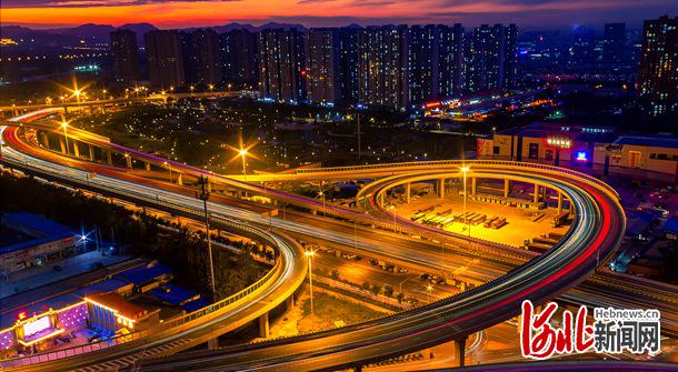 石家庄市流光溢彩的城市照明夜景。任宾摄