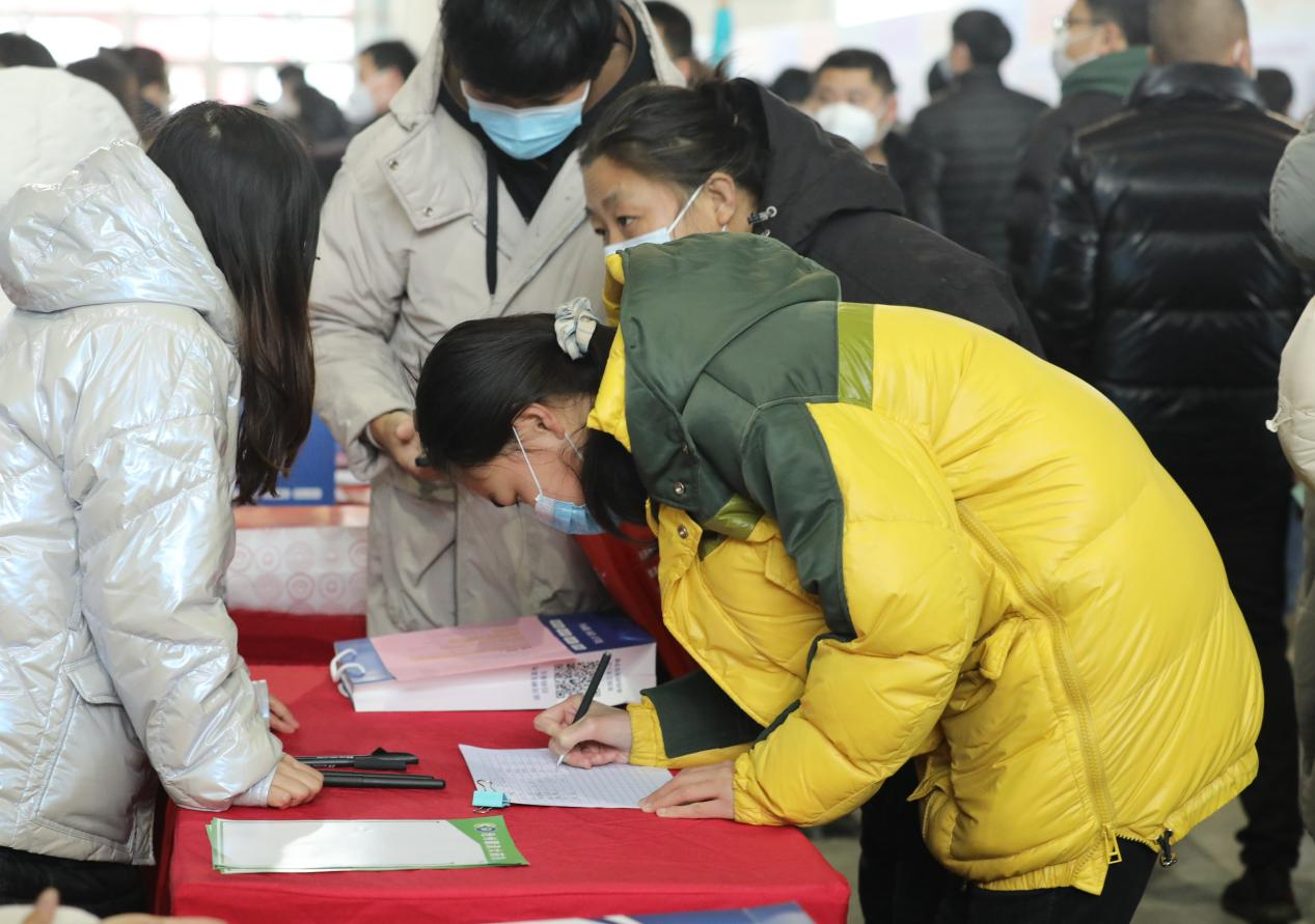 招聘会现场人头攒动。在各企业设置的咨询台前,有的求职者在了解招聘需求、薪资待遇等信息,有的求职者已和企业达成初步就业意向,开始填写就业意向登记表。
