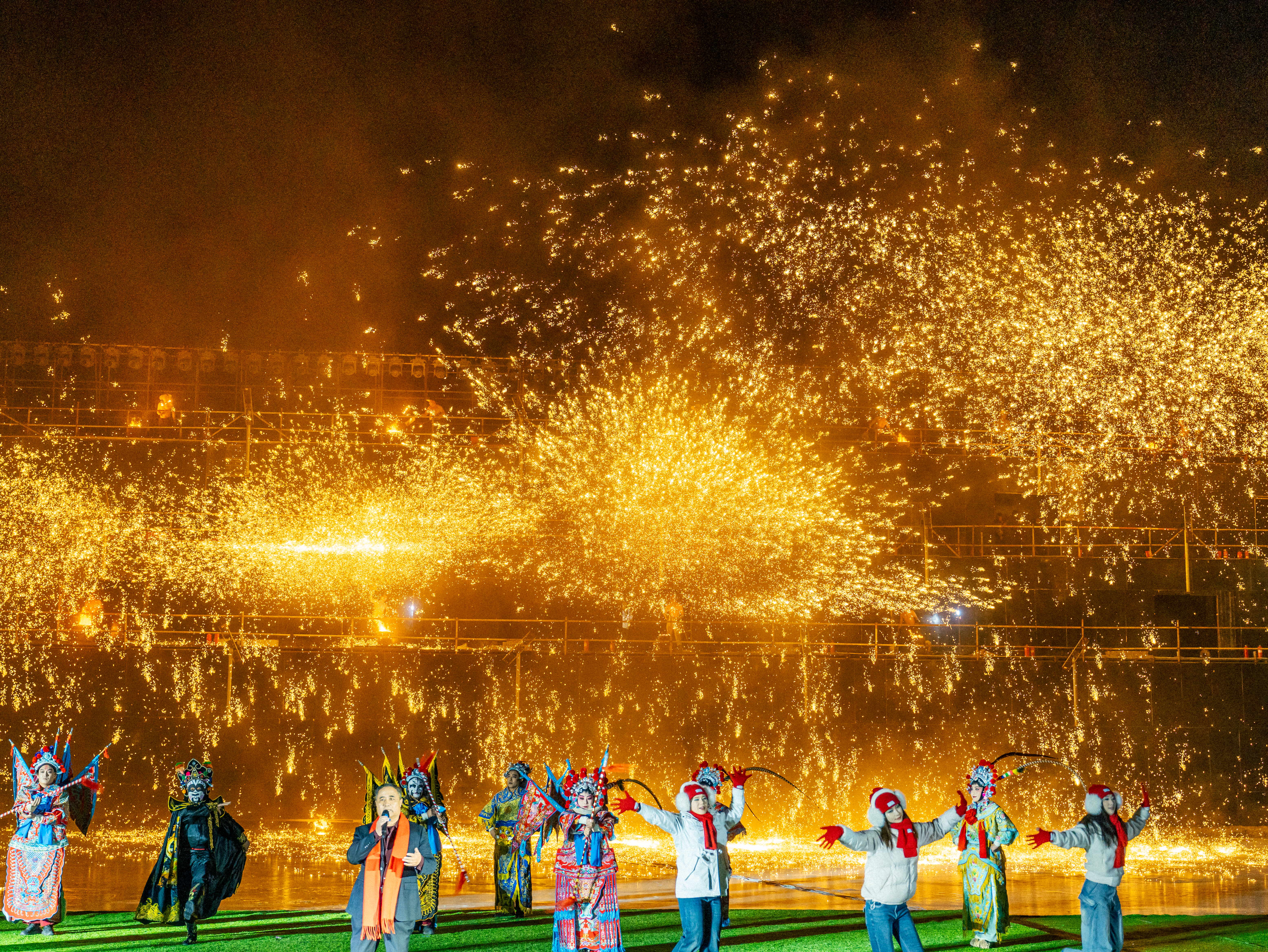 “火红年代”与打铁花同台演绎 摄影 胡嘉利