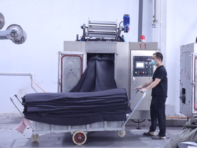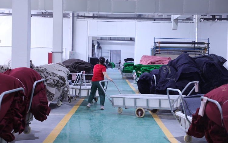 工人进行烫光、剪毛工序 摄影 赵思琪