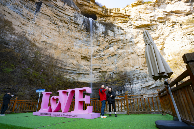 眼下,河北阜平县天生桥瀑布群景区正值秋景观赏期,浓浓秋色吸引游客前来观景游玩。(文/图 徐文龙)