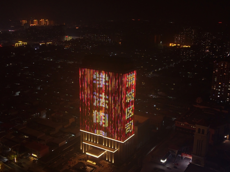 作为满城区中山东路核心地段的新地标,寰球国际总建筑面积6.385万平方米,主楼高达24层,集餐饮、会议、住宿等多功能于一体,日常人流量大、视觉覆盖面广。满城区司法局精准把握地标建筑的宣传优势,会同忠政民商事调解中心创新推出“楼体光影普法”模式,将法治宣传与城市地标有机融合。