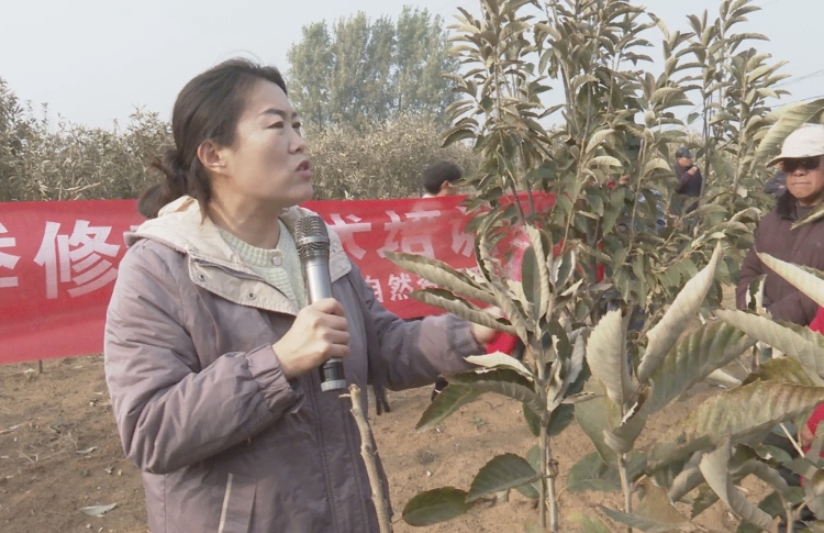 贾云霞正在向群众演示剪枝的方法 遵化融媒体中心供图