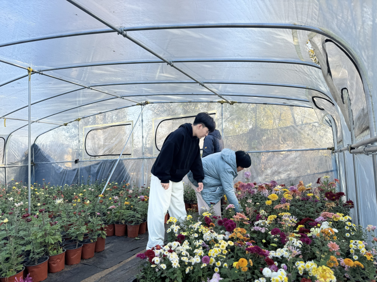 返乡创业,源于一份深厚的乡土情怀与对现代农业发展的敏锐洞察。于淼将所学知识与个人兴趣相结合,在村里流转土地百余亩,潜心打造菊花种植基地。经过两年发展,基地目前已汇集观赏大菊品种600余个,鲜切花品种100余个,形成了从品种选育、科学栽培到精细管护的完整链条。