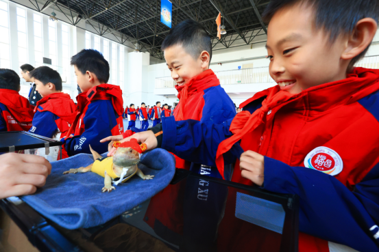 学生观看动物科普展览 供图 徐水区师昌绪学校