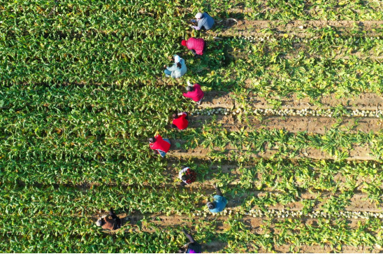 近日,河北省保定市曲阳县产德镇蔬菜种植基地迎来丰收。新鲜的蔬菜在冬日暖阳下勾勒出一幅丰收画卷。