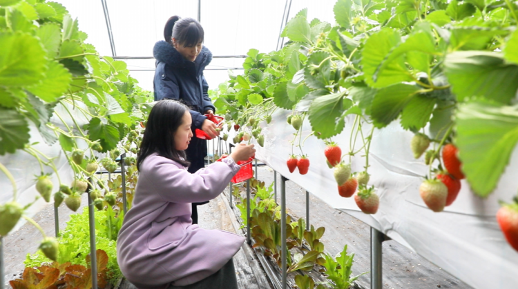 数九隆冬,然而在河北省迁安市亚滦湾农业开发有限公司温室大棚内,暖意融融、果香四溢。新鲜饱满的草莓、脆嫩爽口的黄瓜、酸甜多汁的西红柿挂满枝头,吸引了络绎不绝的市民前来采摘体验。“我特别乐意来这儿采摘,这里的果蔬口感都特别好,尤其是草莓,家里老人孩子都爱吃。今天特意过来摘点,让家人尝尝鲜。”市民邵美莲一边小心翼翼地采摘草莓,一边笑着说道。