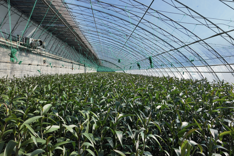 瞄准冬季百合市场缺口大、节日期间优质百合供不应求的商机,神农现代农业示范园精准把握市场需求,利用现代农业技术攻克北方冬季低温、光照不足的种植难题,采用玻璃连栋智能温室与日光温室,搭配地源热泵供暖系统,精选西伯利亚、阿兰尼等十几个耐低温、短日照百合品种,在10-22℃的可控环境中实现花期稳定。同时,聘请辽宁凌源专业技术人员全程跟进百合生长各阶段温湿度调节,保障花卉品质。百合鲜切花预计2月初上市,售价每枝15至20元,是夏季价格的3倍。