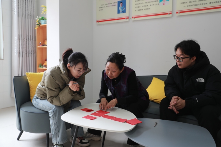“孩子沉迷手机怎么办?”“期末考试成绩不好感觉很焦虑?”“经常控制不住和孩子发脾气。”2月2日,在保定市顺平县天泽社区心理咨询室,社区心理咨询师针对近期家长们的“期末焦虑”开展情绪疏导和游戏疏压。