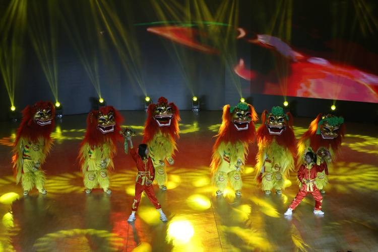 来自该区中小学、幼儿园、文化名家工作室、青少年活动中心等单位的近500名少年儿童及演职人员欢聚一堂、载歌载舞,以童真童趣传递新春喜悦。宋昊洋、张箐格、赵伊阳、王冠丁、尹俊皓、韩雨伽等6名小主持人激情洋溢,用清澈的童声串联起整场联欢会。器乐演奏、歌曲、舞蹈、情景剧、朗诵、相声及舞狮、武术、飞叉、剪纸服装秀等类型的28个节目轮番上演,传统文化、时代气息、非遗展示、现代科技等多元融合,为全区少年儿童及广大群众献上了一场文化艺术的视听盛宴。