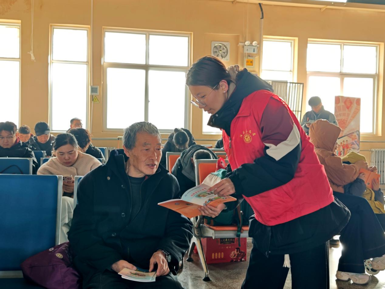 返乡大学生在车站候车室为群众普及消防安全知识 摄影 于亚茹