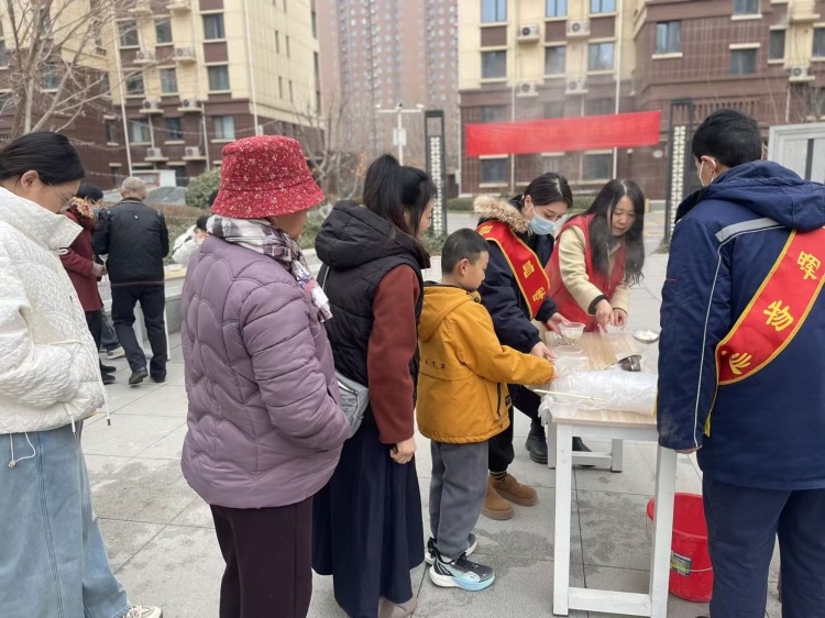 建设社区为居民煮元宵送元宵 供图 满城区文明办