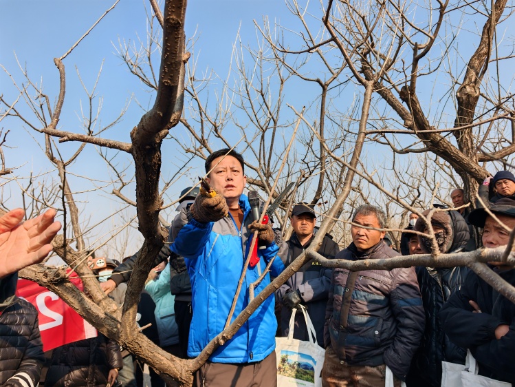 专家正在为群众讲解剪枝知识 摄影 贾云霞