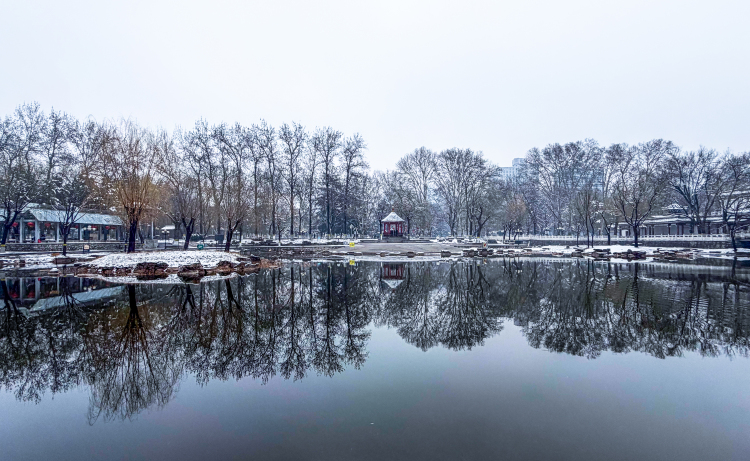 近日,一场不期而至的降雪让石家庄换上银装。长安公园内,枝头挂满晶莹雪絮,湖面覆上一层薄纱,亭台楼阁在皑皑白雪中更显古朴雅致。