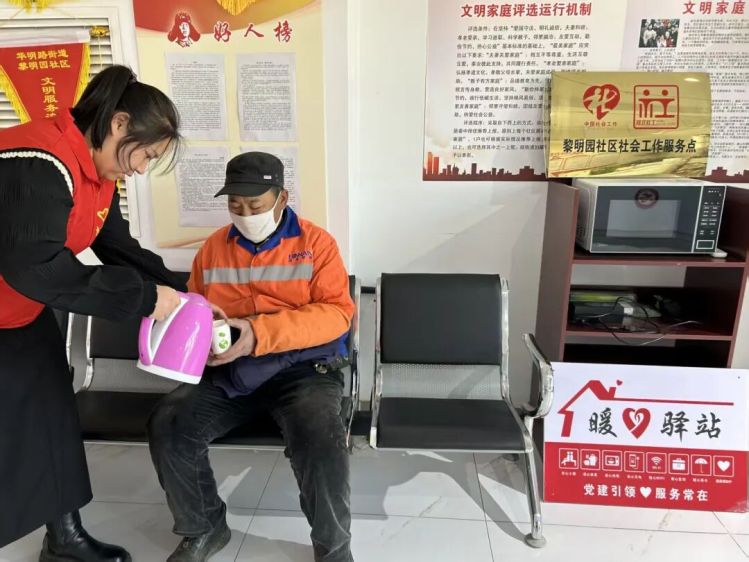 华明路街道聚焦户外劳动者“喝水难、休息难、充电难、避雨难”等现实困扰,对现有公共区域实施微改造、精提升,将普通空间升级为集歇脚休息、饮水补给、手机充电、雨具借用、应急药品、有声阅读于一体的多功能服务点,实现“冷可取暖、热可纳凉、渴能喝水、累可歇脚、伤可用药”的全场景保障。这些分布在社区角落的驿站,既是外卖小哥、快递员、环卫工人的“歇脚港湾”,也是全体居民的“便民小站”,让社区服务从“窗口办理”延伸至“家门口服务”,一杯热水、一把座椅、一处充电口,看似微小的设施却件件暖在群众心头。