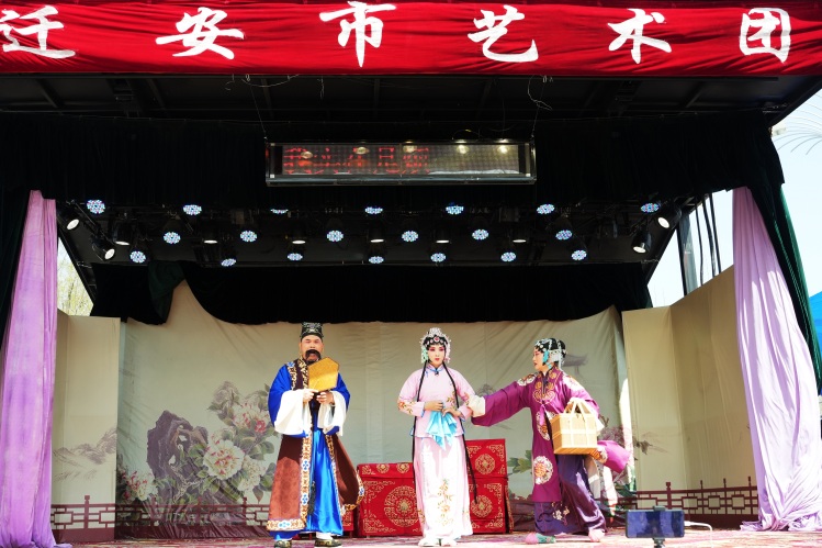 在河北亚滦湾桃花节上,演员为游客带来评剧《花为媒》 摄影 彭月娟